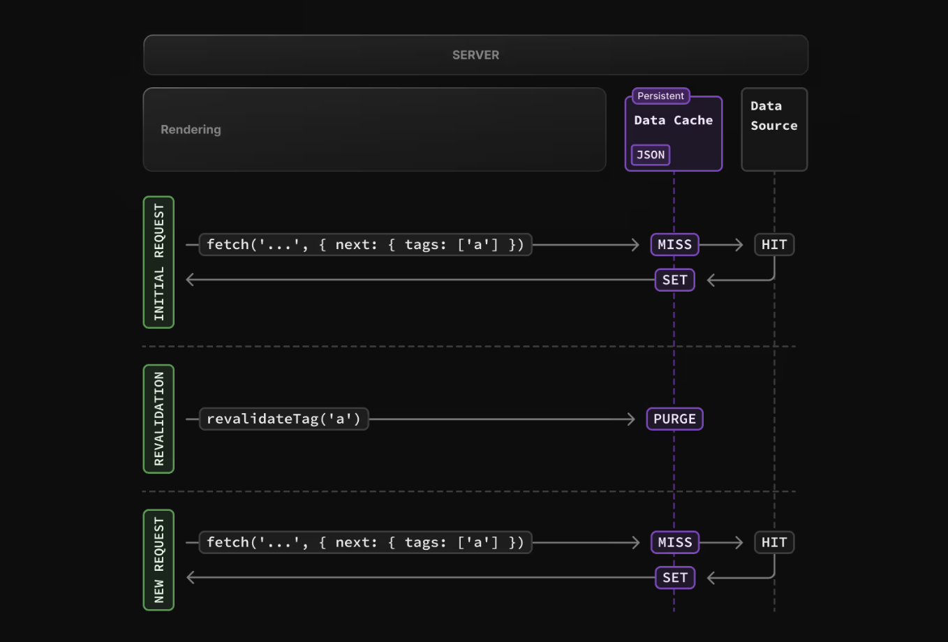 I can cache data for later reuse. Note that the Data Cache is persistent across incoming requests and deployments. Its still possible to revalidate the data with On-Demand Revalidation or Time-based Revalidation.
